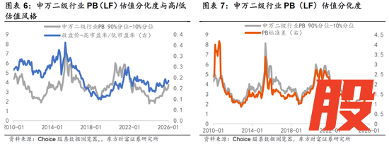 长维度风格切换尚在偏左侧:1、景气度视角:截至1月31日,A股共约2133家上市公司披露2025年年度业绩预告。从业绩兑现度看,近一个月盈利预测调升(超预期)的板块仍集中在【涨价+AI】这两条景气主线上,且AI硬件(半导体、元件、通信网络设备等)及涨价链(工业金属、能源金属、农化品等)的25Q4单季净利润预告算术平均同比增速较25Q3均有进一步提升。与此同时,值得注意的是,上游价格持续上涨已导致25Q4部分中游制造业品种盈利增速出现下滑隐忧,26Q1恐将持续。2、估值视角:申万二级行业的估值分化程度在历史上能较好的指示高/低市盈率风格的切换时点。以2010年、2014年、2021年为例,申万二级板块中90% PB分位对应值-10% PB分位对应值来到5以上的高位后,高/低市盈率风格便容易发生较大级别切换。目前这一指标虽处于2010年以来中位数以上水平,但仍未达到高度警示区间。3、历史复盘视角:商品价格上涨未必意味着成长全面跑输,也不意味着必然向消费风格传导。以2008-2011这轮上行周期为例,智能手机浪潮下电子板块收益亮眼,整体成长风格也最为占优;消费风格在2008-2011、2016-2017年行情中确实占优,但2022年跑输。