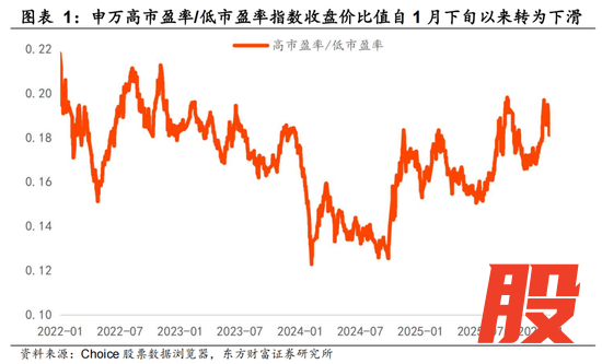 申万二级行业的估值分化程度在历史上能较好的指示高/低市盈率(即成长/价值风格)的切换时点。以2010年、2014年、2021年为例,申万二级板块中90% PB分位对应值-10% PB分位对应值来到5以上的高位后,高/低市盈率风格便容易发生较大级别的、长达3-4年的切换。目前这一指标虽处于2010年以来中位数以上水平,但仍未达到高度警示区间,后续整体价值风格胜率的提升还需配合政策信号、盈利相对强弱趋势改变的进一步催化。